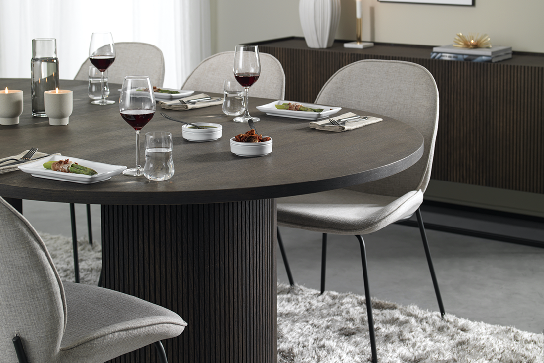 LINEA – our most popular and customer-favourite collection, where iconic design meets the harmony of natural materials. High-quality oiled oak veneer lets you feel the true texture of real wood every time you sit down. The LINEA table is not only a beautiful statement piece for your home, but also highly practical – oiled furniture surfaces are easy and quick to refresh if scratched or stained.