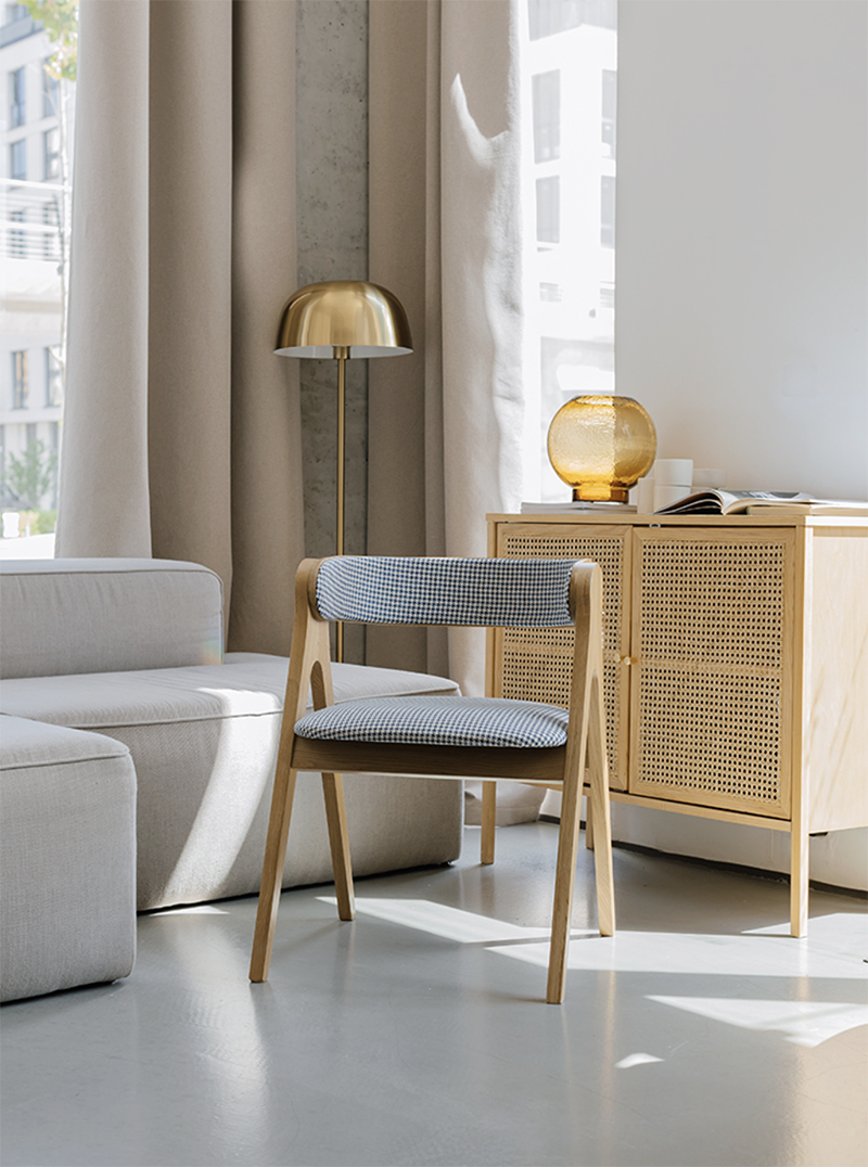 The Maso Chair is a profound synthesis of functionality and artistry. Its base, inspired by a compass, reflects precision and meticulous craftsmanship in design — qualities that have become essential elements of the art of furniture making.