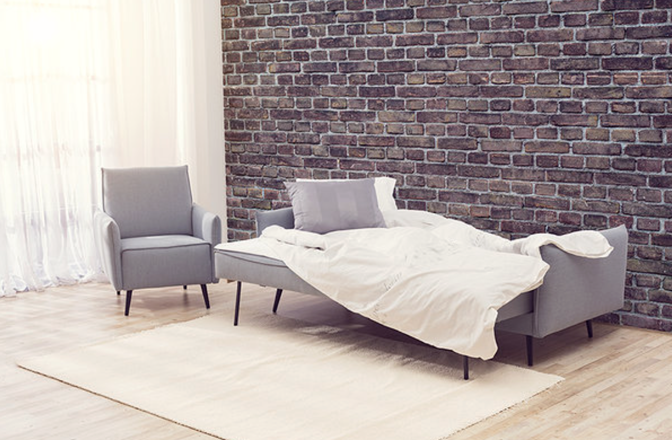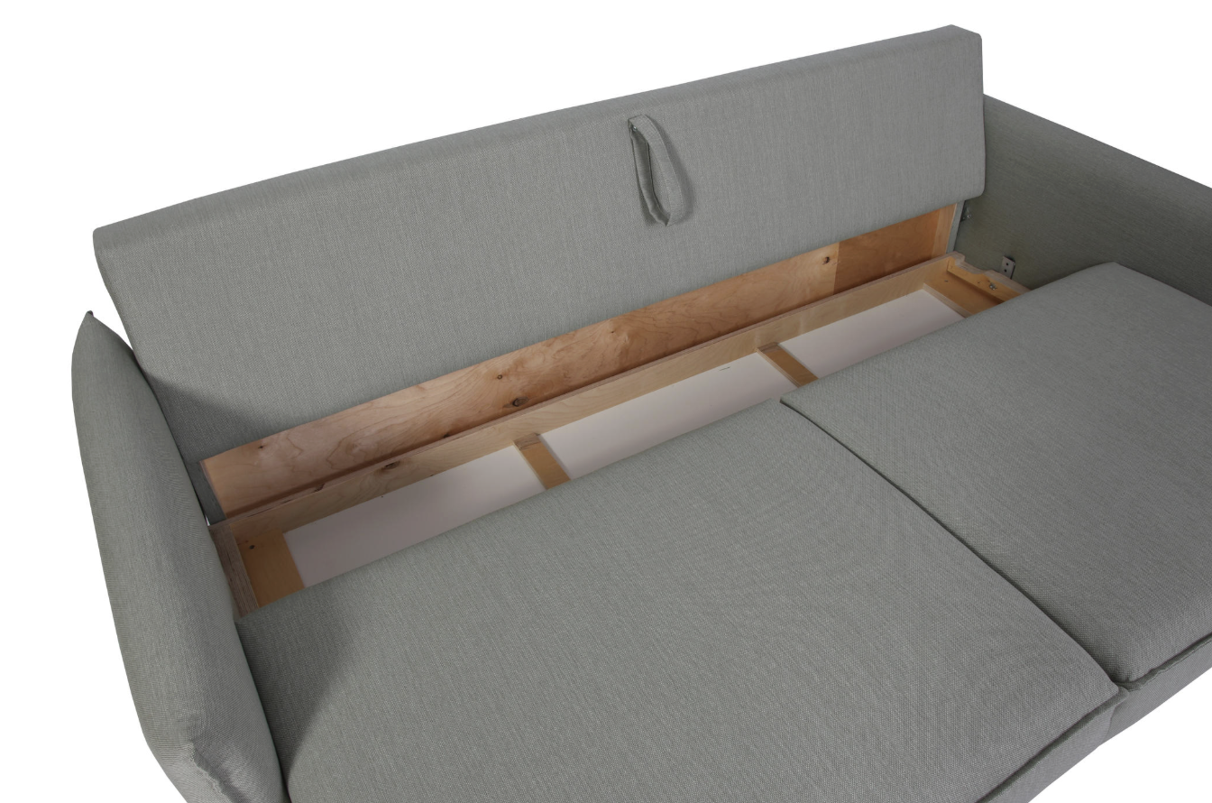 The ART sofa easily transforms into a sleeping area, while the integrated bedding storage box allows convenient storage of duvets and pillows. The raised legs not only visually lighten the design but also make it easy to clean the floor underneath the sofa.