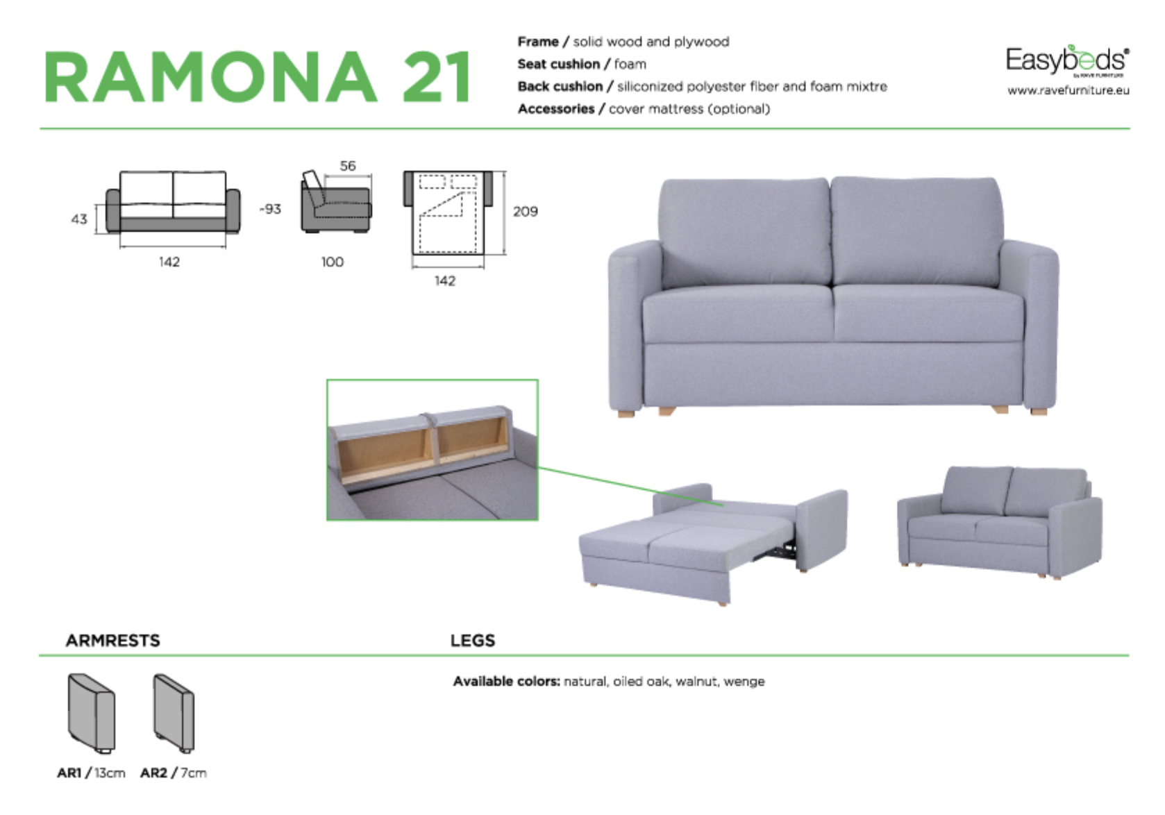 RAMONA 21 is a reliable and aesthetic choice for those looking for a universal, functional sofa bed without unnecessary details.
