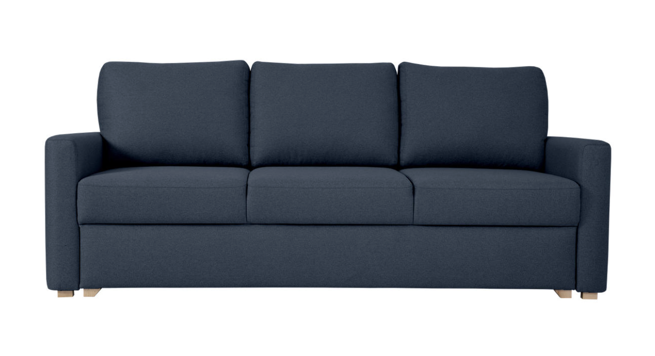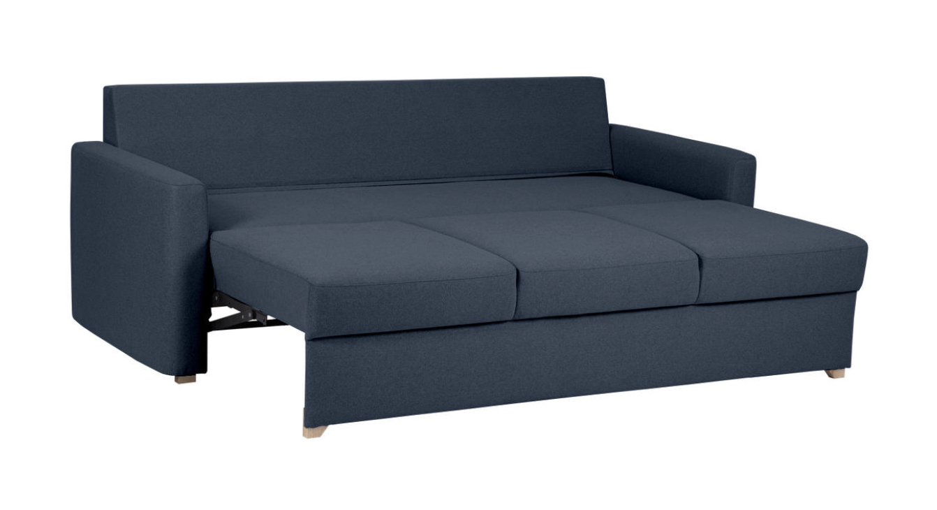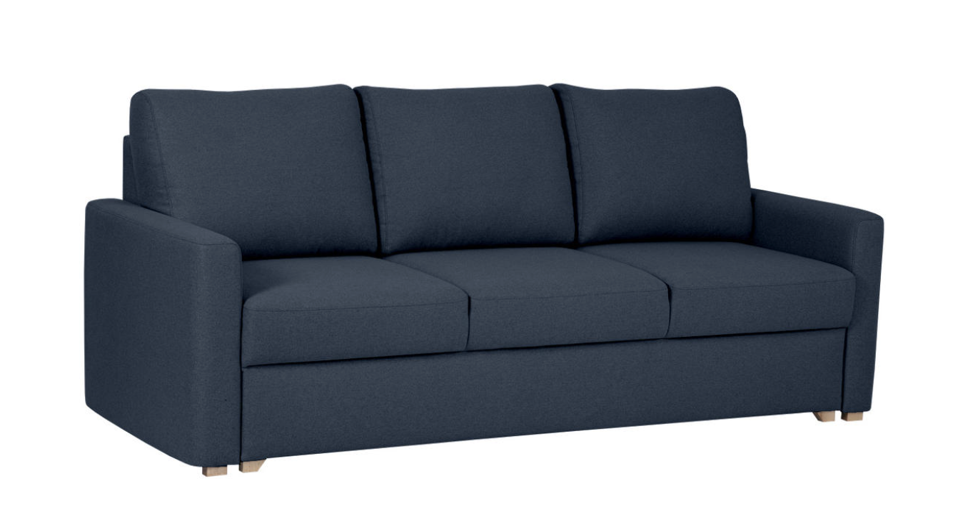 The soft seat and comfortable backrest ensure a pleasant seating experience, while the sofa easily converts into a full-size sleeping area, making it suitable both for daily relaxation and accommodating guests. Integrated storage compartments provide extra space for bedding, blankets, or other essentials.