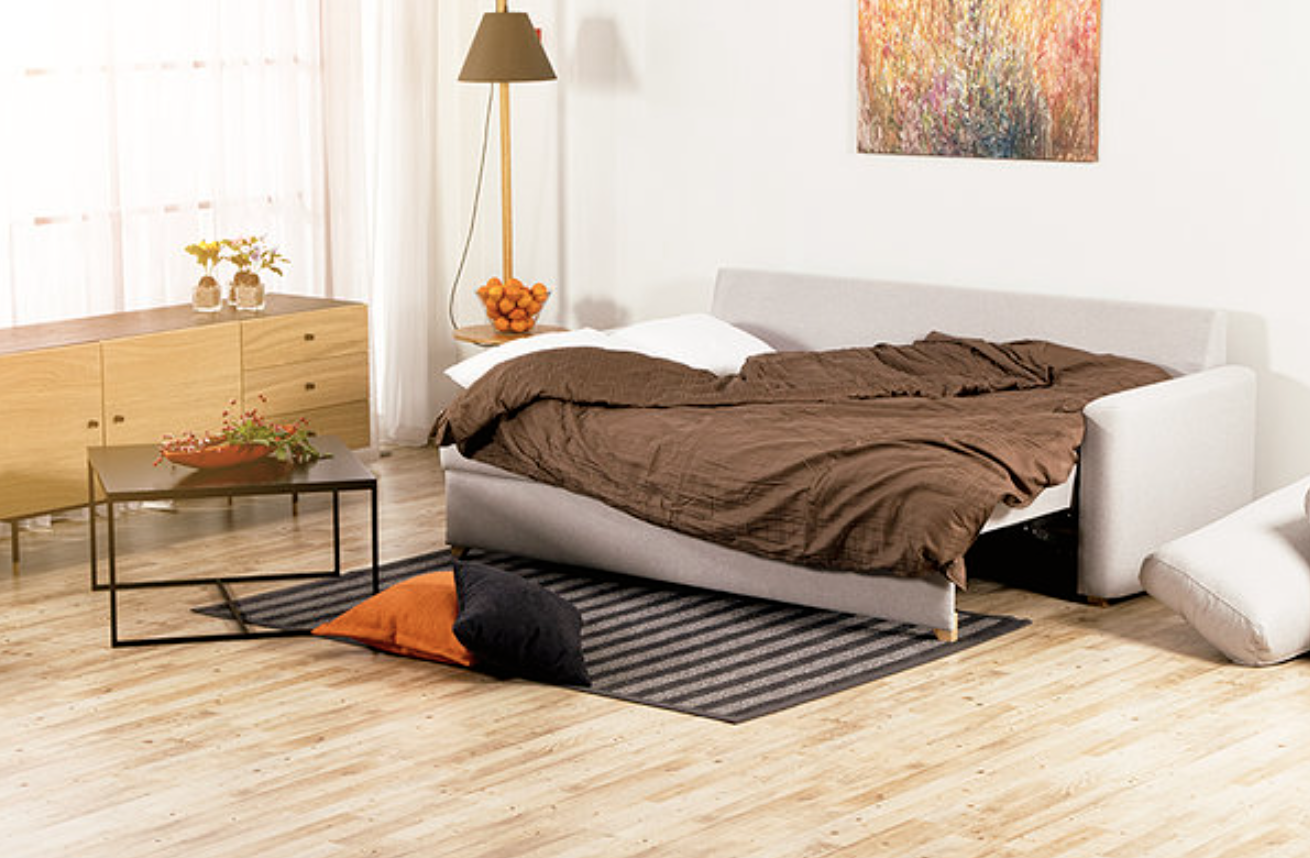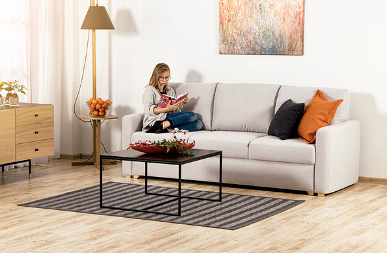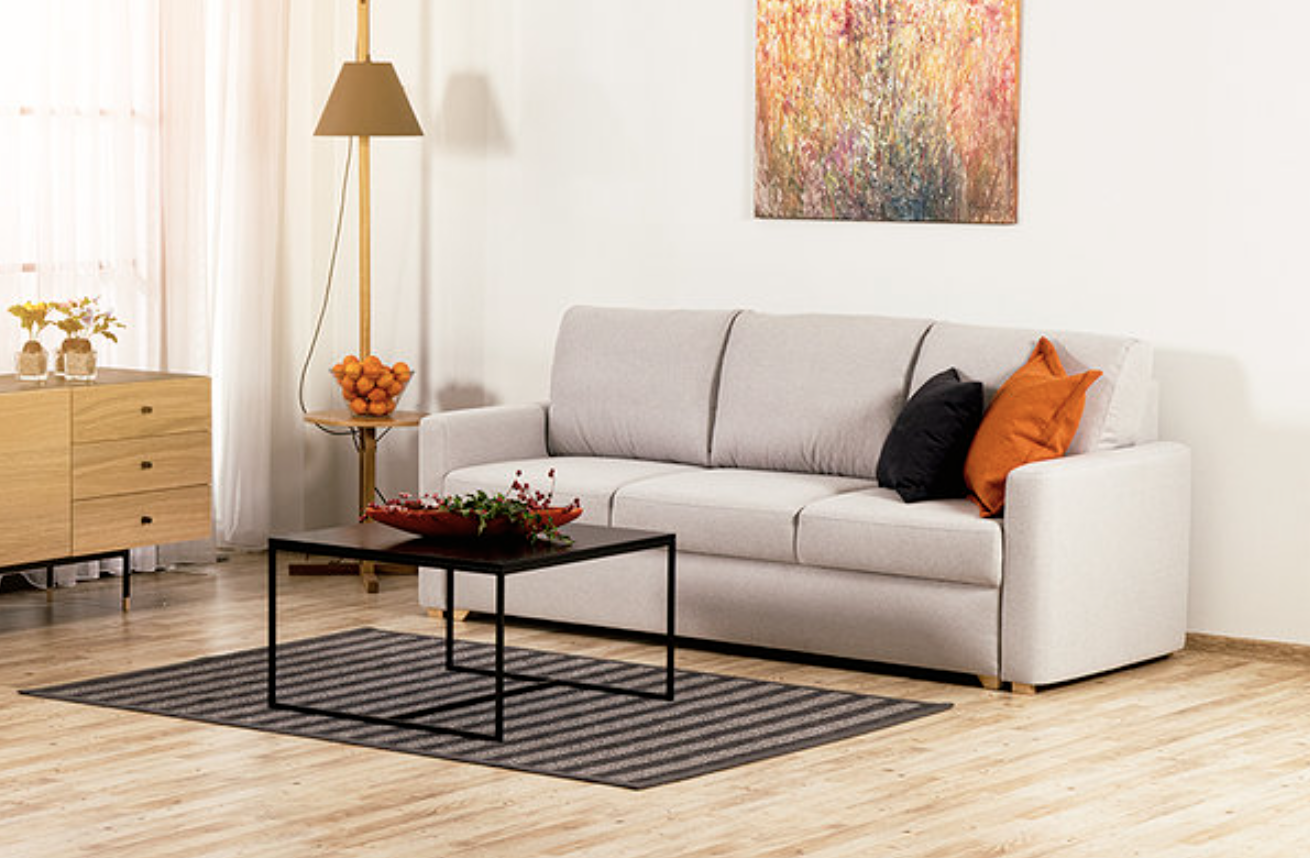 The sofa bed can be upholstered in fabrics from five different fabric groups, making it easy to adapt to various interior styles and needs. The final price depends on the selected fabric group.