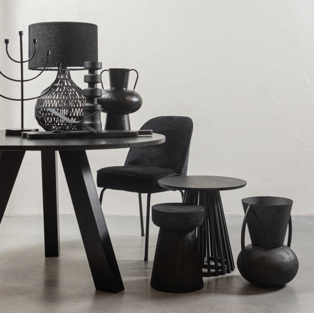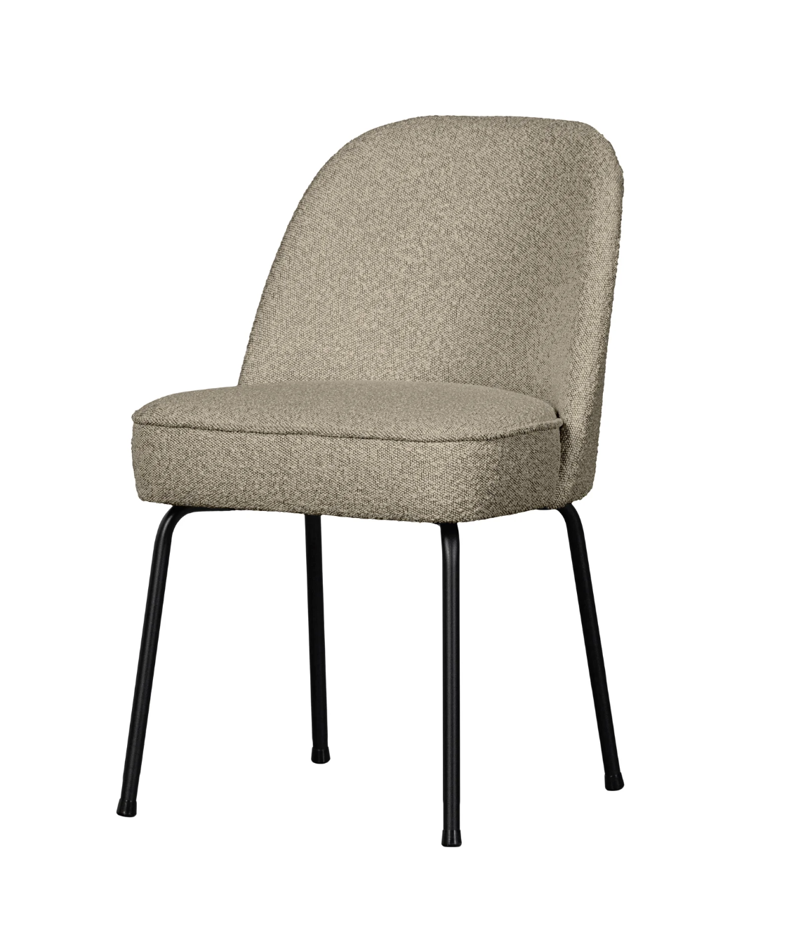 Finish: metal leg base with boucle beige or velvet black upholstery