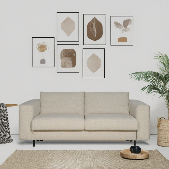 Compact yet comfortable sofa that folds into a bed for your unexpected guests! A self-supporting mechanism, fixed backrest and seat cushions, which are not needed to remove while opening the action and a 14 cm mattress which will give you a luxury comfort of a bed.