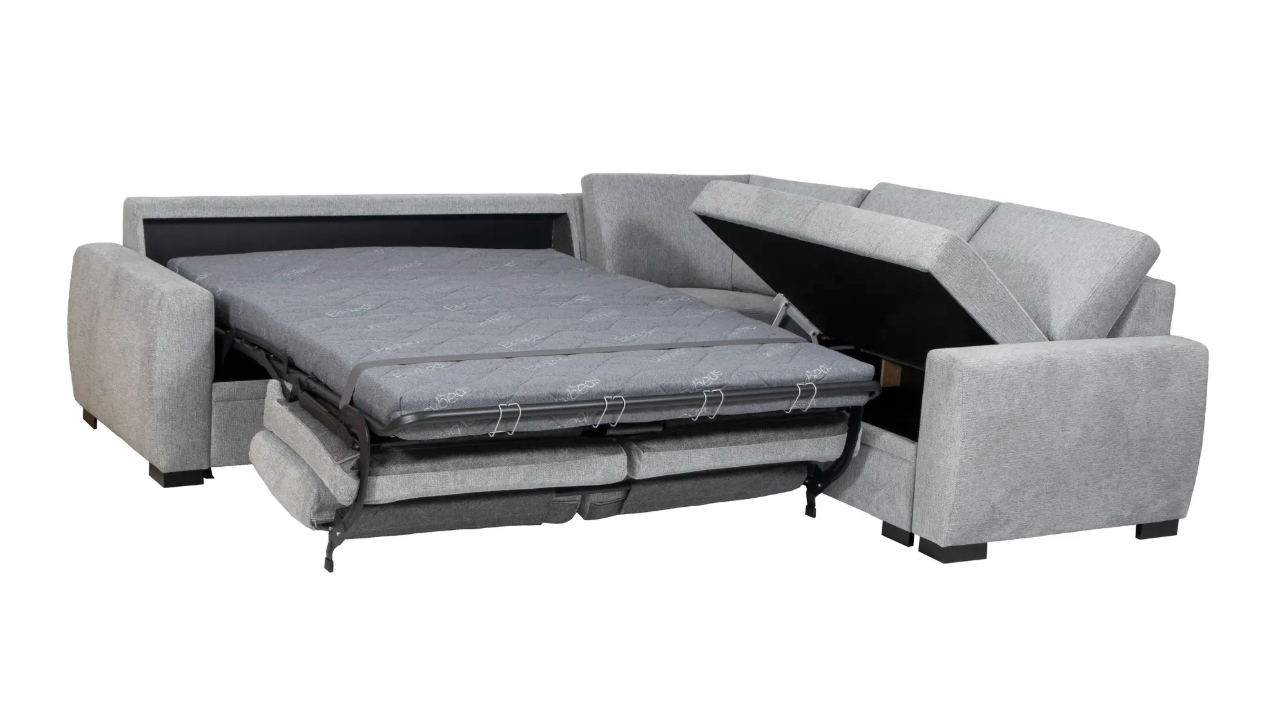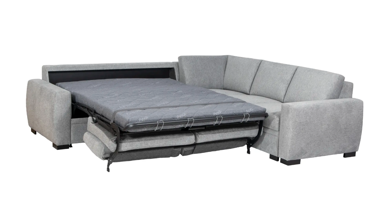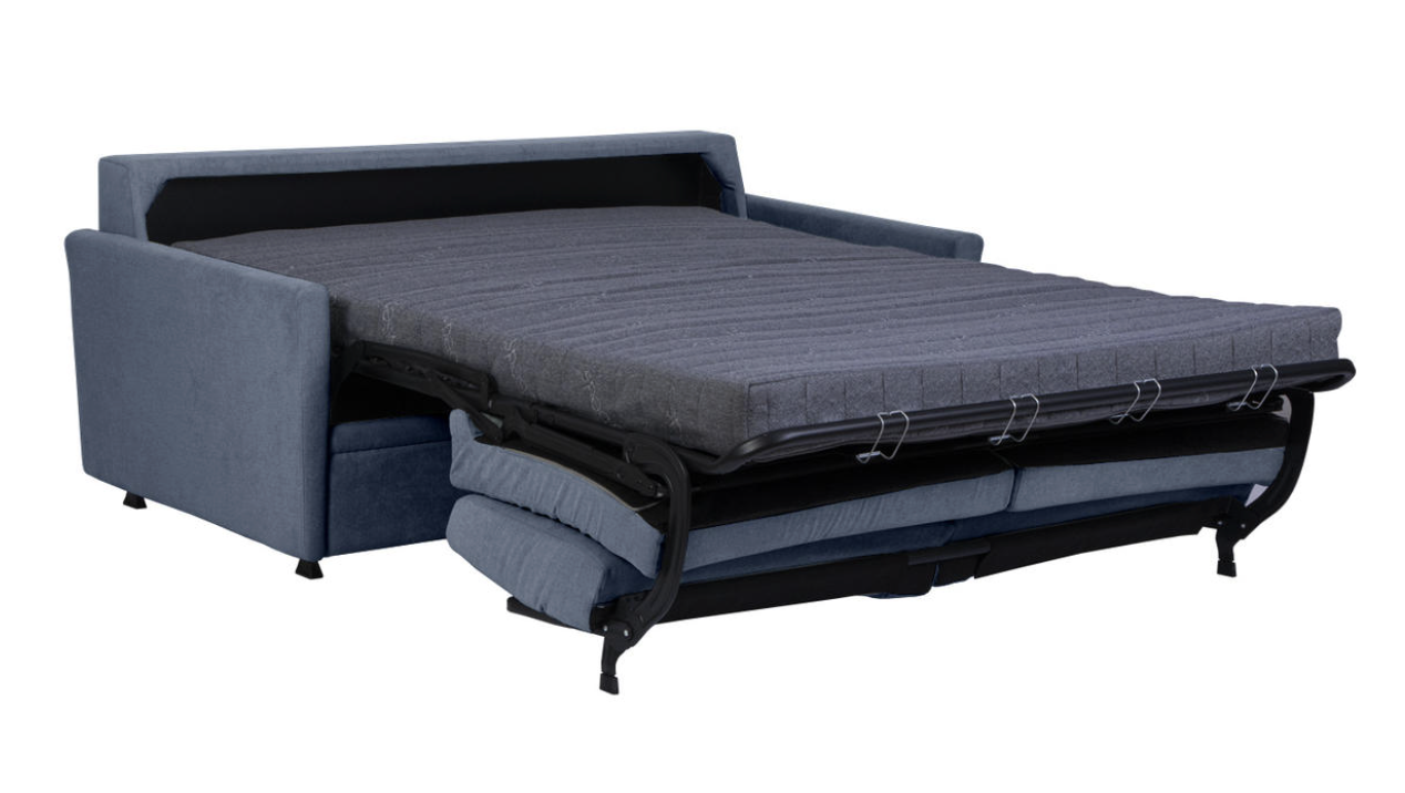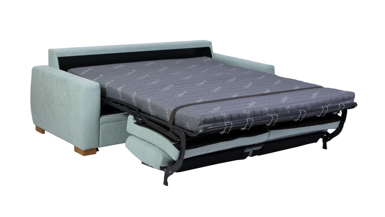 Sofa aprūpinta patikimu metaliniu išskleidimo mechanizmu su grotelėmis (lamelėmis), kuris užtikrina gerą atramą miego metu ir lengvą naudojimą. Išskleidus sofą, ji tampa pilnaverte miego vieta, tinkama tiek svečiams, tiek reguliariam naudojimui. Komfortiška sėdimoji dalis ir atlošas užtikrina patogų poilsį dieną.