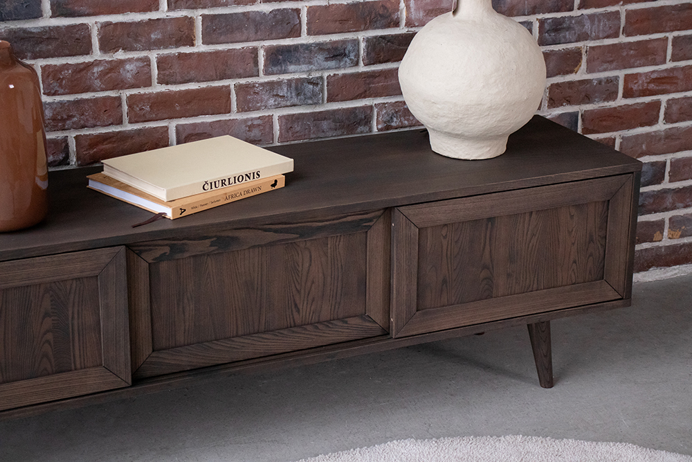 TV spintelė iš WOODCRAFT kolekcijos – tai natūralaus medžio dizainas, kuriame dera funkcionalumas, minimalizmas ir galimybė pritaikyti baldą prie savo interjero. Kolekcijos baldai pasižymi švariomis linijomis ir lengvai keičiamu charakteriu – skirtingos kojų bazės ir apdailos leidžia sukurti individualų derinį jūsų namams.
